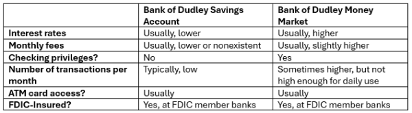 If you choose an FDIC member bank as your financial partner, that bank’s savings and money market accounts will both be covered under FDIC deposit insurance. (Read last month’s article for a discussion of how FDIC deposit insurance protects)